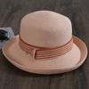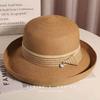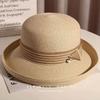 WTEMPO Elegant Casual Foldable Summer Straw Hats Women's Striped Wide Brim Solid Color Outdoor Sunscreen Hats