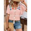 Damska letnia bluzka z kwadratowym kołnierzykiem i koronką szydełkową z krótkim rękawem