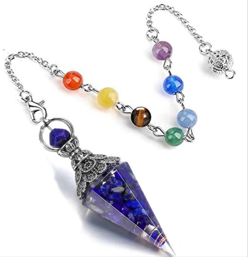 Kryształowe wahadła lecznicze do wróżenia, sześciokątny spiczasty stożek, żywiczny chip Reiki Wicca, duchowy wisiorek energetyczny czakry z łańcuszkiem