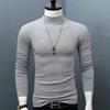 Męska, dopasowana, koreańska koszula w jednolitym kolorze, z półgolfem i długim rękawem, ciepła warstwa bazowa