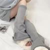 Szare Dzianinowe Rozkloszowane Skarpety Wełniane: Jednokolorowe zimowe ocieplacze na nogi w stylu Hot Girl i JK