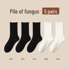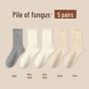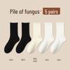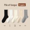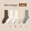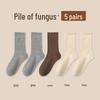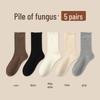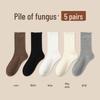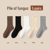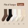 Women's Medium-Length Coffee-Colored Socks: Simple, Pure Color with Wood Ear Lace, Loose Fit, Perfect for Spring, Autumn, and Winter.