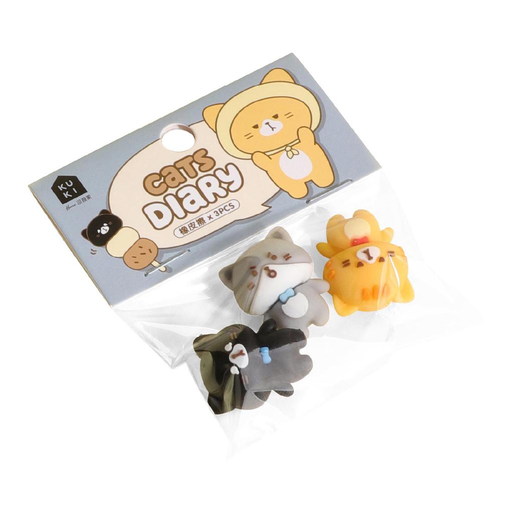3 szt. Gumka do ścierania Cats Diary w rozmiarze mini, z kreskówkowym wzorem, mniej kurzu, narzędzia do czyszczenia PVC do ołówków, biur, szkół, studentów