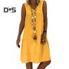 Damska letnia sukienka bez rękawów z dekoltem w serek w kształcie litery A, jednokolorowa, do kolan, sukienka midi, zakładana przez głowę, typu kamizelka, wakacyjna, plażowa