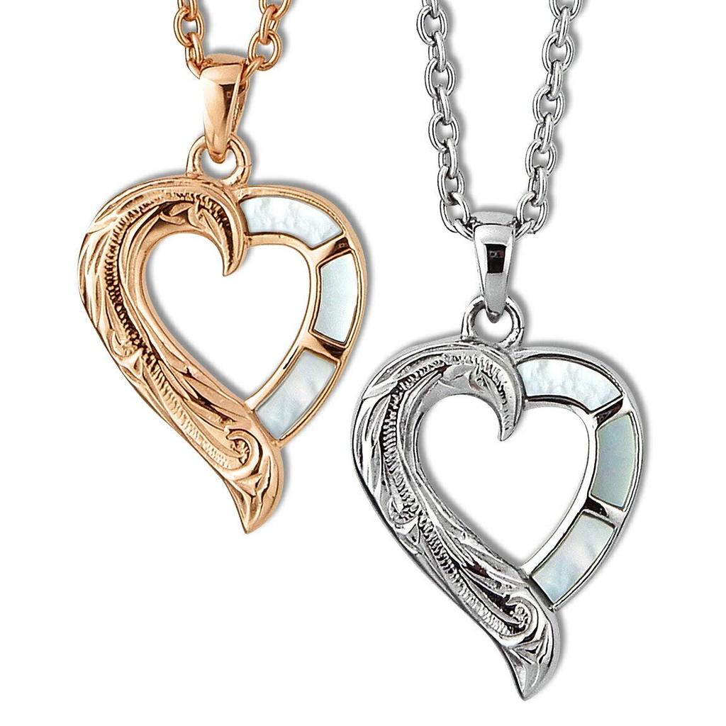 Aloha Lokahi Hawajska Biżuteria Para Naszyjnik Stal Chirurgiczna Serce Muszla Zwoje z Różowego Złota Azuki Łańcuszek Stal Szerokość [Aloha Lokahi]