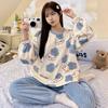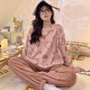 Przytulny flanelowy komplet piżamowy dla kobiet - jesień/zima, uroczy koralowy polar, okrągły dekolt, koreański styl, odzież domowa