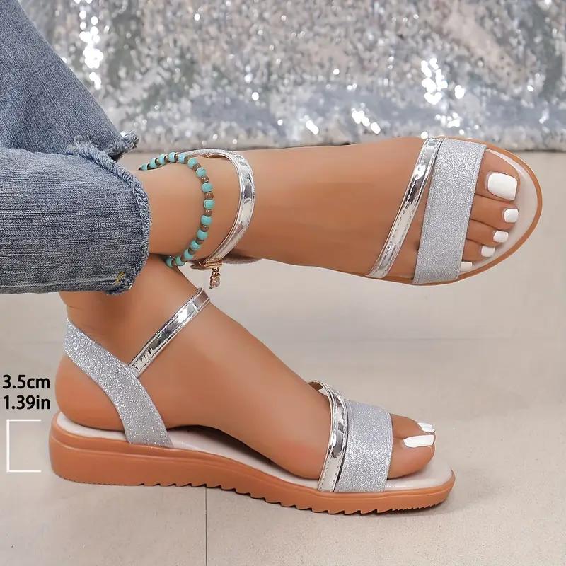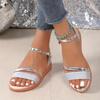 Damskie sandały na niskim obcasie, płaskie, jednokolorowe, z odkrytymi palcami, na zewnątrz, antypoślizgowe, codzienne sandały