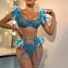 INS Seksowny komplet bielizny z koronką z piórami - Czteroczęściowy strój kuszący łańcuchem