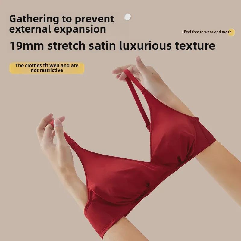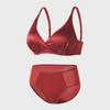 "Zestaw czerwonej jedwabnej bielizny Benmingnian - Jedwab morwowy, Bez fiszbin, Lekko usztywniany biustonosz."