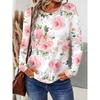 Modna damska koszulka z grafiką kwiatową z okrągłym dekoltem i długim rękawem y2k Casualowe topy Odzież damska Harajuku Odzież damska Pulower