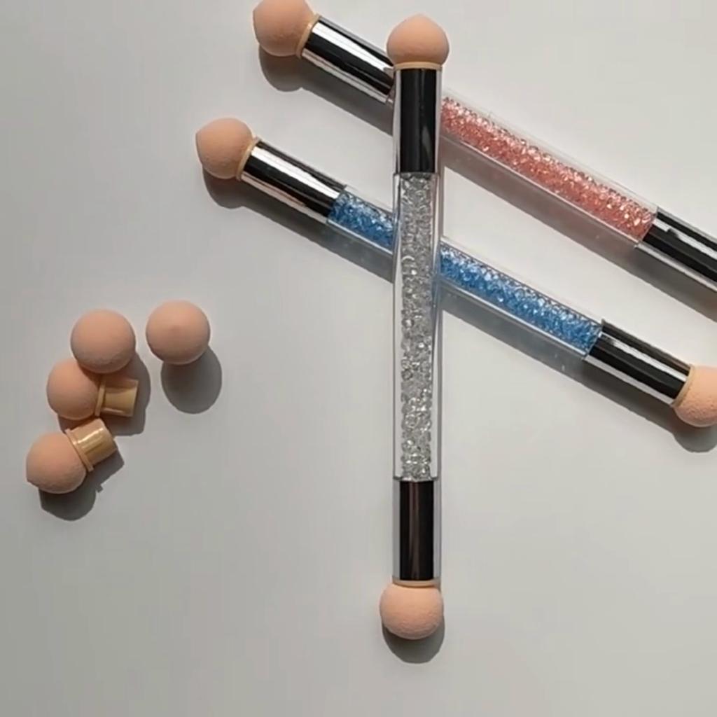 Dwustronny pędzelek do zdobienia paznokci z gąbką gradientową, zmywalny pędzelek do zdobienia paznokci z 4 wymiennymi główkami gąbkowymi i uchwytem z kryształkami