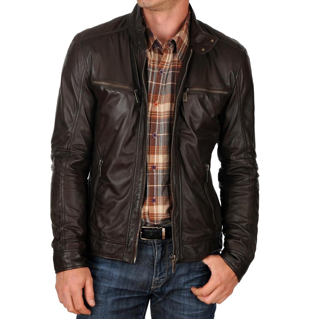 SkinOutfit Men's Genuine Lambskin Brown Leather Jacket Stylish Motorcycle Bomber Biker Outerwear MJ 34