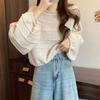 Koreański Kremowy Sweter Pulower z Grubym Splotem - Luźny Krój Podstawowy Top dla Kobiet