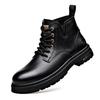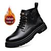 Męskie buty Martin do połowy łydki - Zimowe plus aksamit, Skórzane buty z wysoką cholewką i grubą dwuwarstwową podeszwą z krowiej skóry.
