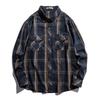 Wiosna Lato Retro Męska Koszula w Kratę Wierzchnia Top Ubrania Casual Długi Rękaw Kraciasta Narzutka Jedna Kieszeń Guziki Bluzka