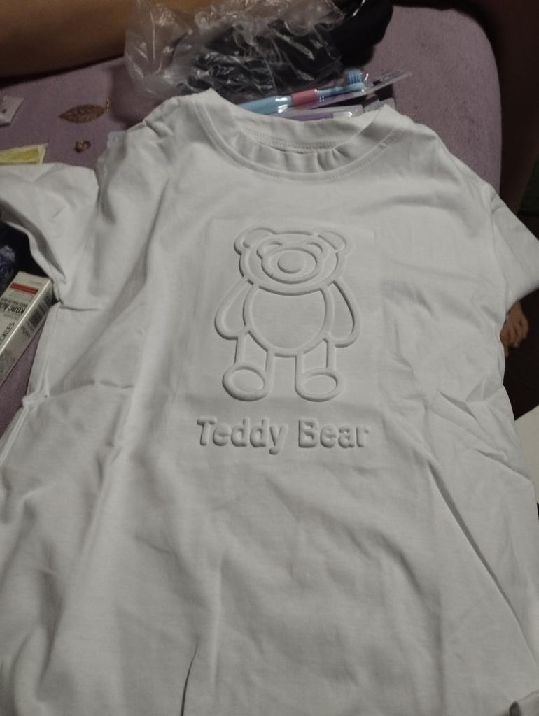 Chłopięca koszulka z bawełny z wytłoczonym misiem 3D - miękka, z krótkim rękawem dla dzieci