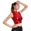 *Damski krótki top z golfem, bez rękawów, dopasowany do sylwetki i metalicznym połyskiem, idealny na imprezę