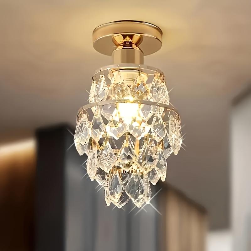 1 szt. Elegancki Mini Kryształowy Żyrandol Półwpuszczany Żyrandol, Lampa do Przedpokoju