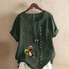 Women's Fashion Dog Flowers Prined Short Sleeve T-shirt Loose Cotton Shirt Casual Loose Summer Blouse Tops Plus Size
