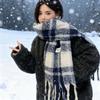 Damski wełniany szalik w kratę z moheru, zima 2024: Luksusowy, Koreański Styl, Wszechstronny, Futrzany, Gruby, Ciepły.