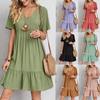 Women's Short Sleeve Dress Summer Loose Fitting Casual V-neck Dress