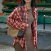 2024 Spring/Summer Red Plaid Women's Slim-Fit Loose Long Shirt