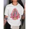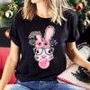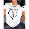 Letni okrągły dekolt z nadrukiem Top Modny swobodny, słodki, krótki rękaw, damskie koszulki z czystej bawełny