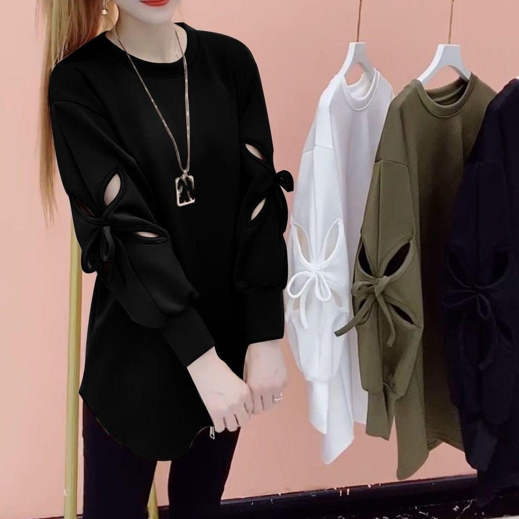 Women's Solid Color Spring and Autumn Long Sleeve Round Neck Pullover Solid Long Sleeve Breathable Long Sleeve