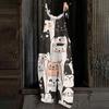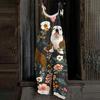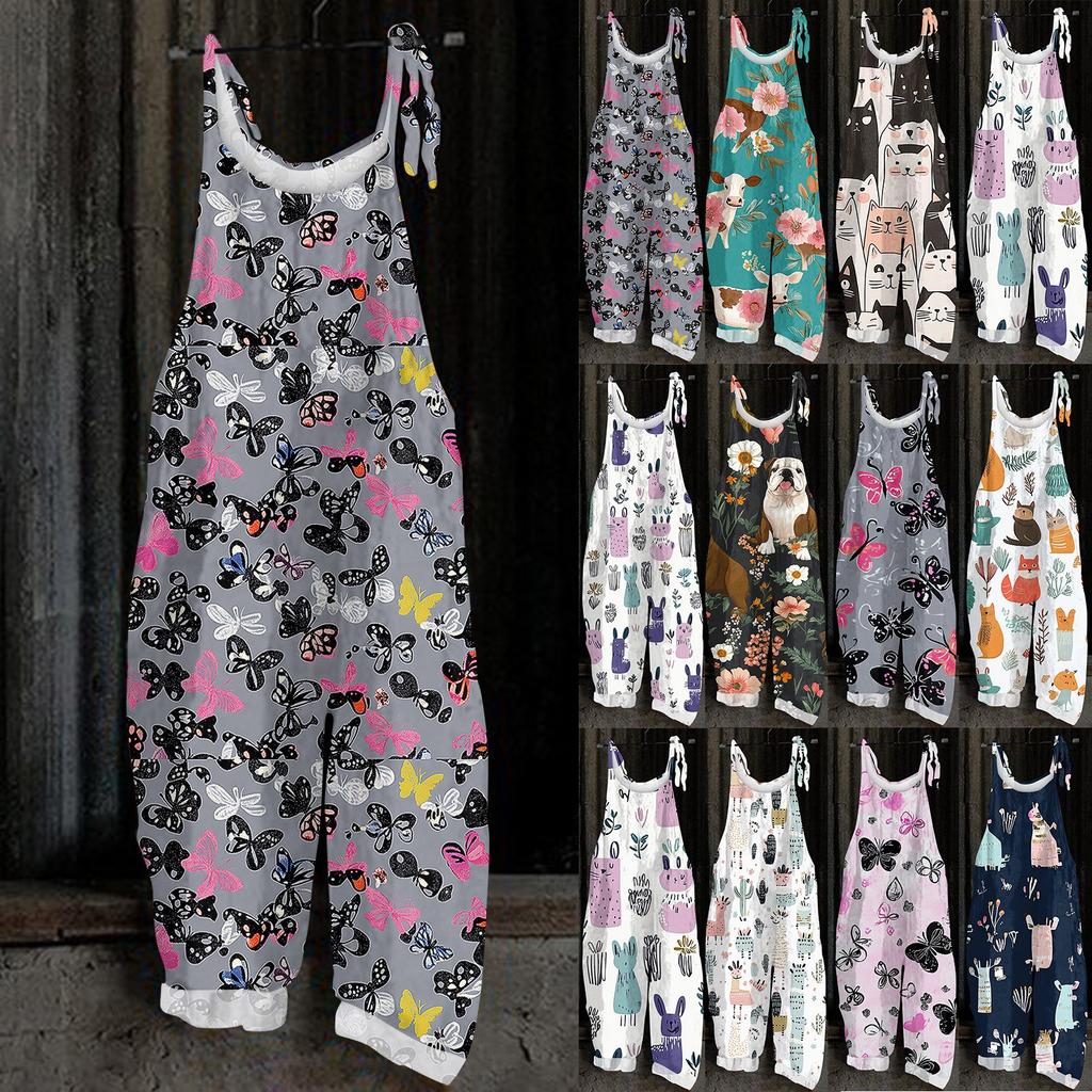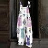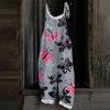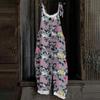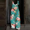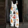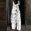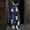 Kombinezon damski z nadrukiem świątecznym, swobodny, luźny, vintage, na ramiączkach, bawełniany, lniany