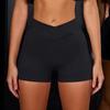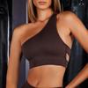 Damski prążkowany zestaw do jogi: Bezszwowy biustonosz odkrywający ramiona z majtkami i szortami z wysokim stanem