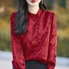 Koszula w stylu chińskim dla kobiet, wiosna, nowy styl, mały stójka, wysokiej klasy top z długim rękawem, koszula retro, koszula