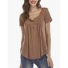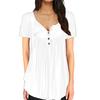 Summer T Shirt Women Pure Color Round Button Short Sleeve Loose Single-Breasted Plait T-Shirt Female Tees Tshirts