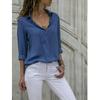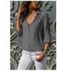 Damska modna nowa koszula z długim rękawem i głębokim dekoltem w serek, szyfonowa