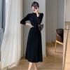 Damska Jesienno-Zimowa Francuska Dzianinowa Sukienka Swetrowa z Płaszczem - Długość Za Kolano