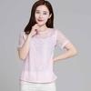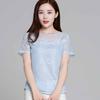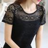 Damska koronkowa, haftowana, biała, elegancka bluzka, letnia, modna, z okrągłym dekoltem i krótkim rękawem, bawełniana koszula, słodka, szykowna bluzka damska
