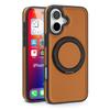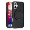 For iPhone 16 Magnetic Case Rotate Ring Kickstand PU Leather+PC+TPU Back Cover