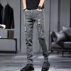 Męskie Czarne Jeansy Slim-Fit z Dziurami - Modny Koreański Styl na Wiosnę i Jesień