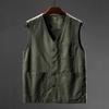 Men's Spring Plus Size V-neck Casual Vest Middle-aged and Elderly Single-breasted Multi-pocket Straight Hem Tops