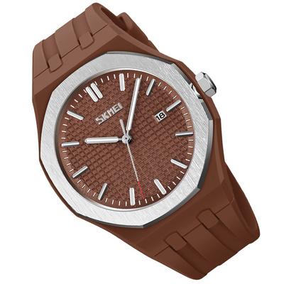 Prosty silikonowy sportowy wodoodporny zegarek na rękę Stylowy swobodny zegarek kwarcowy analogowy z dużą datą fluorescencyjny prezent dla ucznia szkoły średniej brązowy zegarek