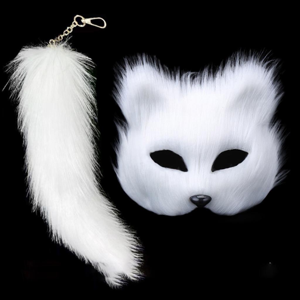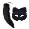 Maska i ogon Therian Zestaw Halloween Cosplays Kostium Akcesoria Kot Maska Ogon Pół Twarzy Sztuczne Futra Lisy Ogon Kot Maska