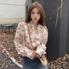 Koszula damska w stylu francuskim z klapami i kwiatowym wzorem, modna koszula damska ze słodkim nadrukiem róż, luźna, zapinana na jeden guzik, bluzki damskie