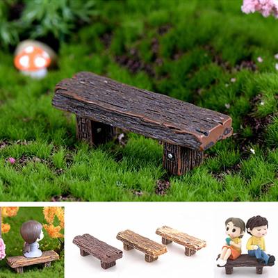 Miniaturowa drewniana ławka parkowa, sukulenty, ozdoby bonsai, romantyczna żywica, stołek miłosny, małe ozdoby, figurka do ogrodu wróżek, lalki