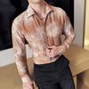 Koszule męskie w stylu brytyjskim, koszule społeczne, modny nadruk, długi rękaw, koszula męska do garnituru, slim fit, pasująca do wszystkiego, odzież biznesowa formalna, bluzki męskie