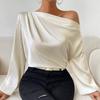 Moda Nowy Asymetryczny Luźny Sweter z Długim Rękawem Bluzki Damskie Elegancki Skośny Kołnierz Seksowne Jednolite Casualowe Bluzki Damskie Plisowana Koszula Vintage 26396