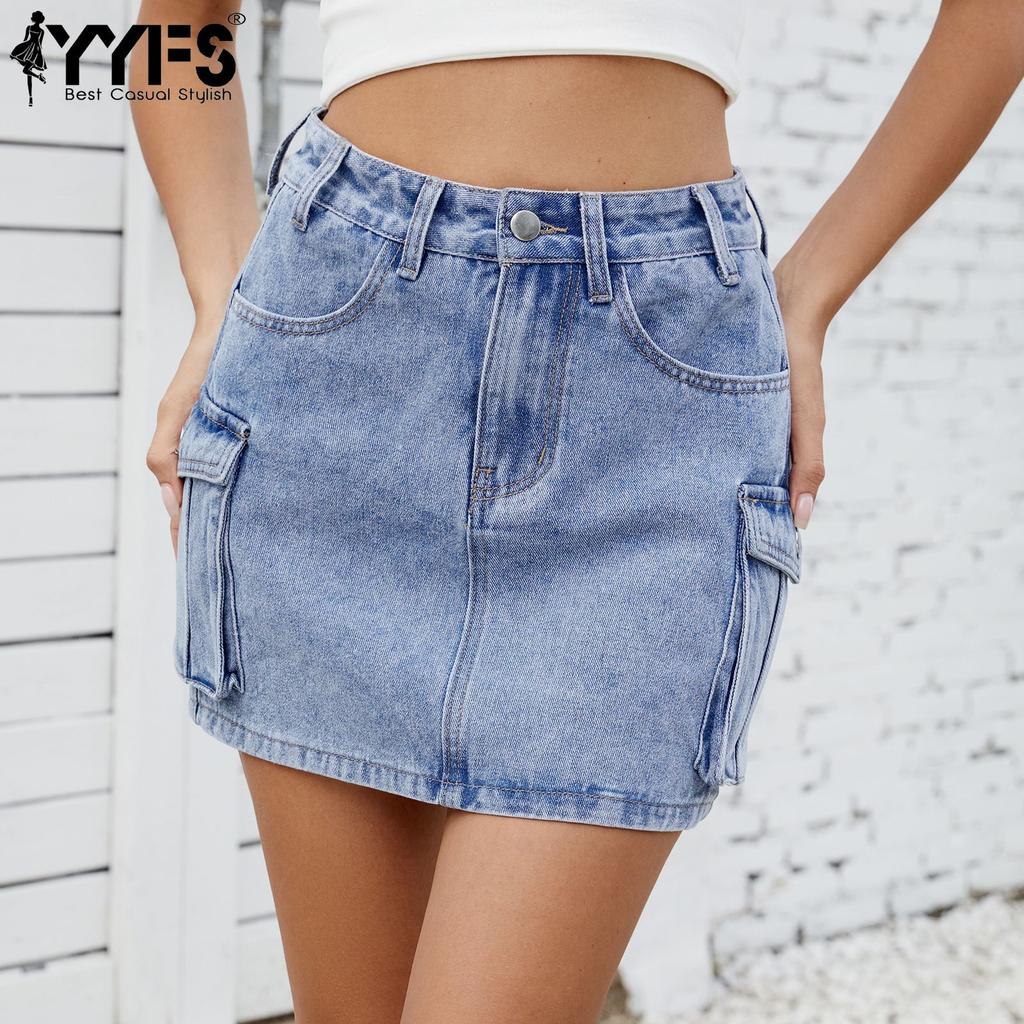 YYFS Damskie spódnice z nadrukiem w jednolitym kolorze, na co dzień, na lato i wiosnę
