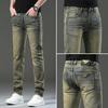 Te męskie jeansy slim fit w stylu retro z efektem zniszczenia są ozdobione w szykownym mosiężnym kolorze, idealne dla tych, którzy szukają modnego jesiennego stylu.. Zaprojektowane z myślą o obcisłym kroju, te dżinsy oferują modną sylwetkę, która dopełnia różne codzienne stylizacje.. Wykonane z wygodnej bawełny, mają unikalną podszewkę ze sztucznego futra w stylu kowbojskim, co podkreśla ich retro wygląd.. Idealne dla chłopców i młodych mężczyzn, te dżinsy bez wysiłku łączą styl i wygodę, tworząc nowoczesny, ale nostalgiczny wygląd.