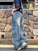 2024 Damskie Amerykańskie Retro High Street Szerokie Ogrodniczki – Modne Proste Jeansy