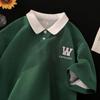 Men's Summer Embroidered Cotton Polo Shirt with College Style Contrast Colors