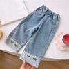 Girls Spring Colorblocking Soft Wide-Legged Pants Middle Child Casual Cute Jeans