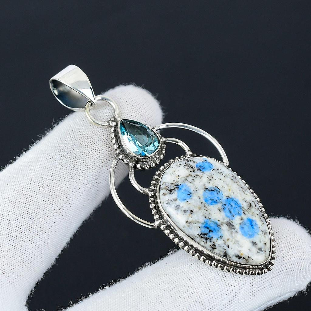 K2 Azuryt, Niebieski Topaz Kamień Szlachetny Ręcznie Robiony Srebro Próby 925 Wisiorek